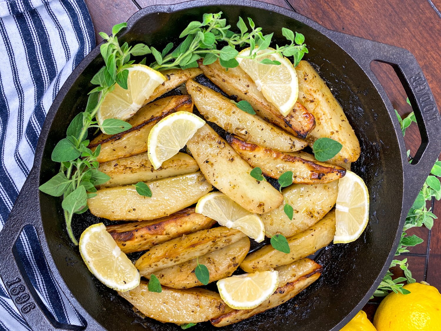 Fried fish with coconut rice, patacones (fried green plantains), salad, and lemon