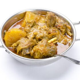 - Serve the Jamaican Curry Goat hot with rice and peas or roti bread.