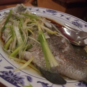 - In a small saucepan, heat the vegetable oil until hot. Carefully pour the hot oil over the fish to release the aromas of the garlic, ginger, and scallions.