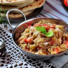- 5 eggplants peeled and cubed