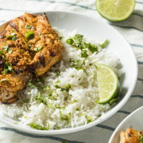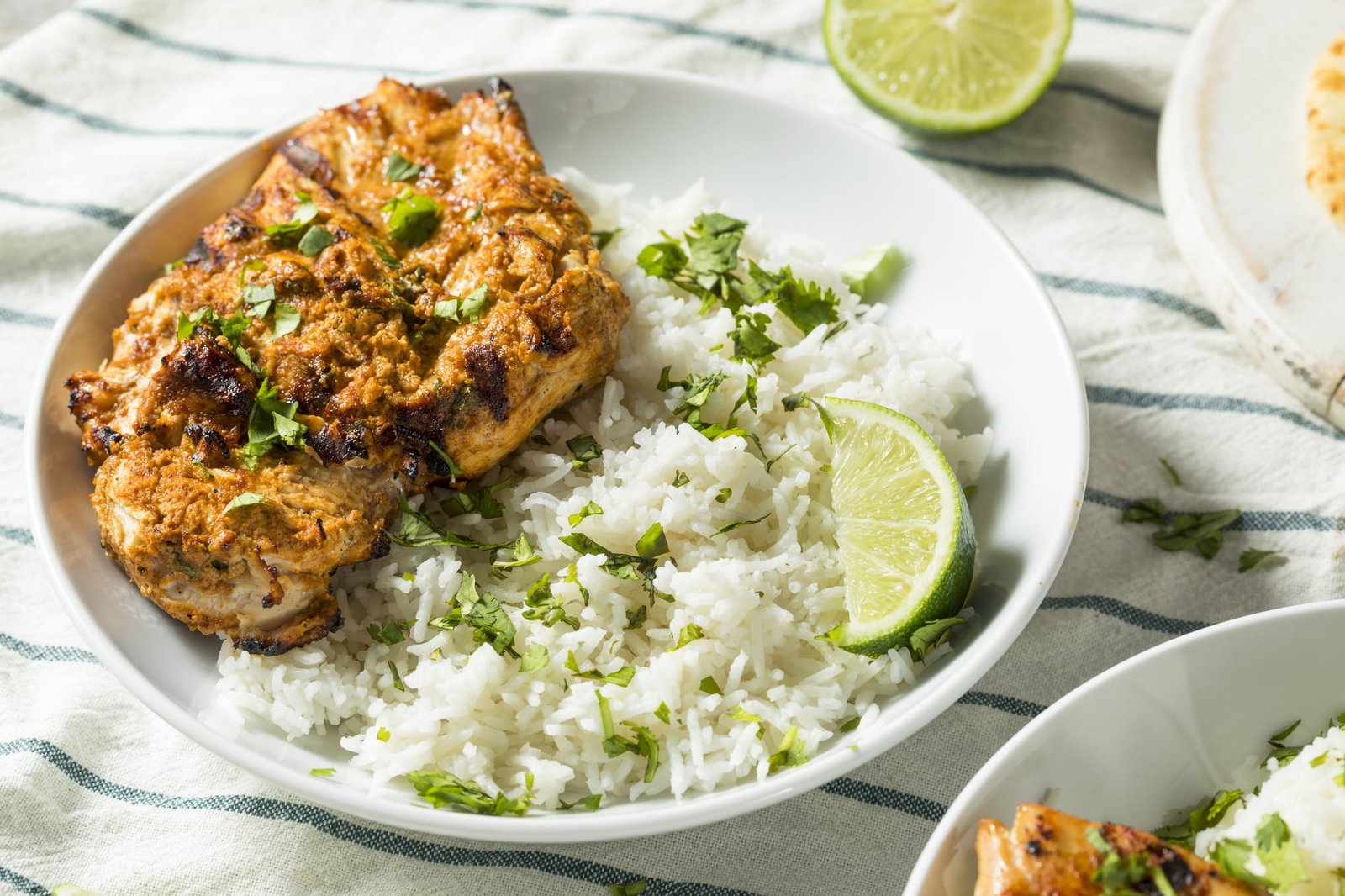 - In a bowl, mix together the yogurt, Tandoori masala spice mix, ginger garlic paste, lemon juice, vegetable oil, and salt.