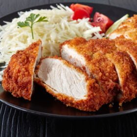 • Slice the Tonkatsu into strips and serve with tonkatsu sauce, shredded cabbage, and steamed rice.