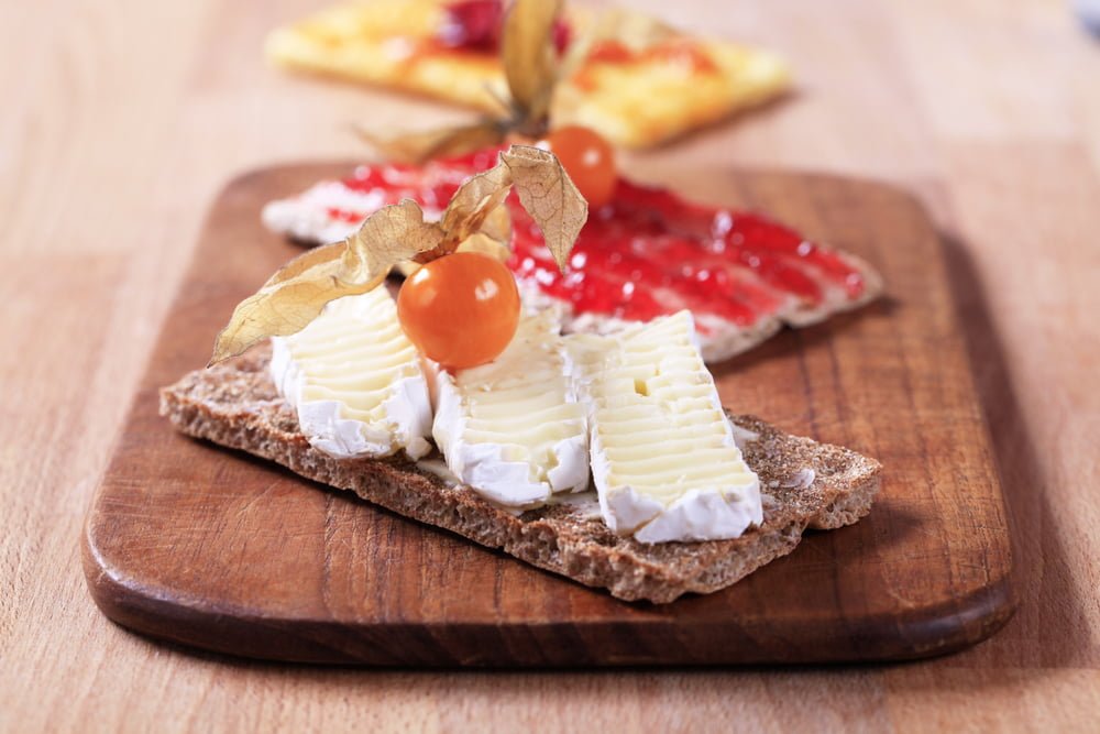 - Spread a thin layer of cream cheese onto each of the 4 crackers.