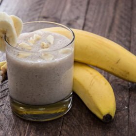 - In a blender, combine the banana chunks, milk, yogurt, and honey.