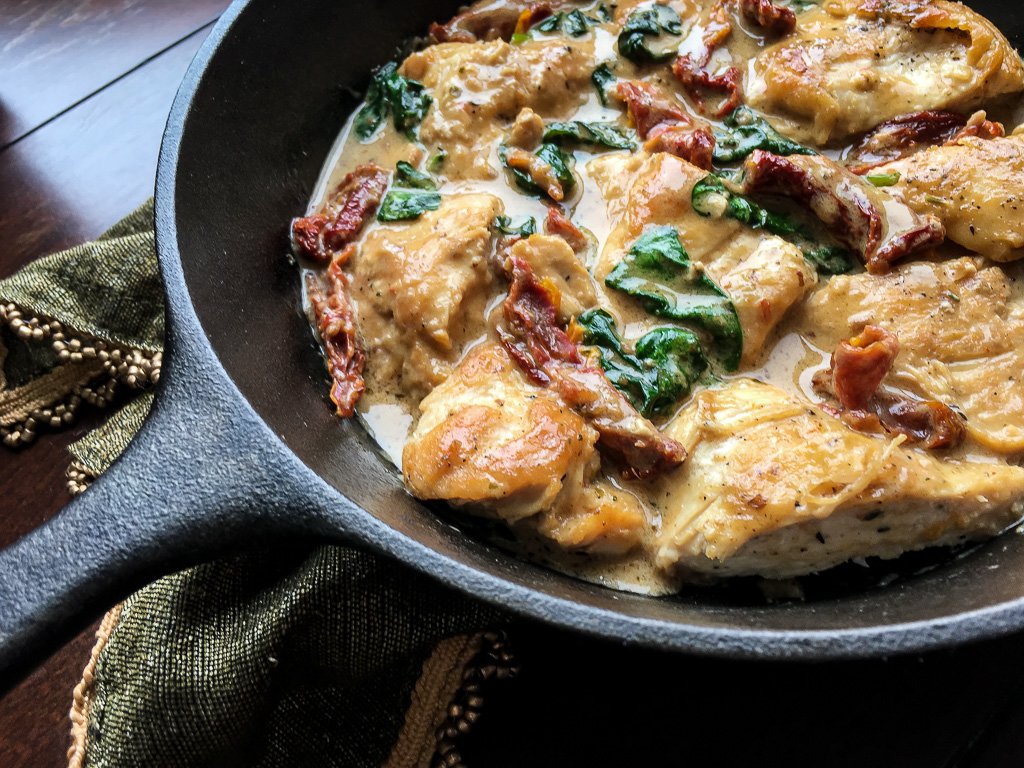 - Add chicken and its juices back to skillet and simmer for another 3-5 minutes, or until chicken is heated through. Taste and adjust seasonings, as desired. Remove from heat and serve immediately with a side of Tuscan White Beans. Enjoy!