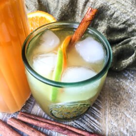 - To serve, fill tall glasses with ice and add a cinnamon stick, and fill with the sparkling apple ginger punch. Enjoy!