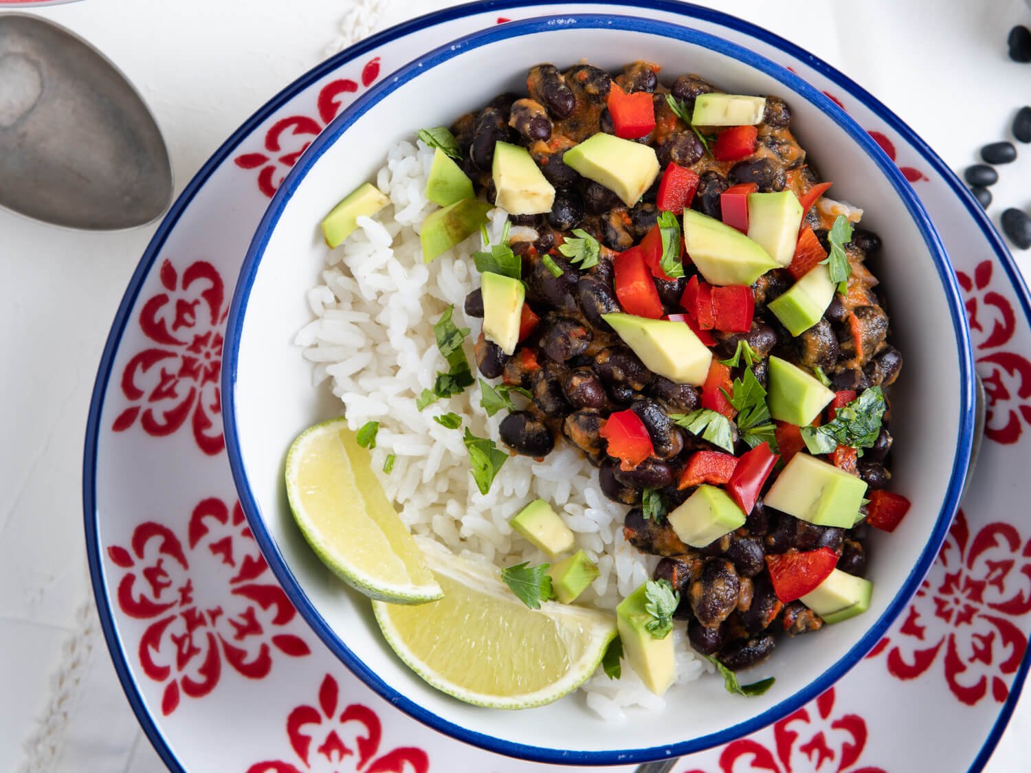 - Pour pureed vegetable mixture back into the Instant Pot® and add red wine vinegar. Season with additional salt and black pepper, as desired, and stir to combine. Serve immediately over a bed of cooked rice, topped with chopped red pepper, avocado, and cilantro. Offer lime wedges, if desired. Enjoy!