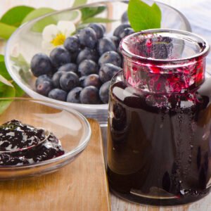 - In a large saucepan, combine the blueberries, sugar, and lemon juice.