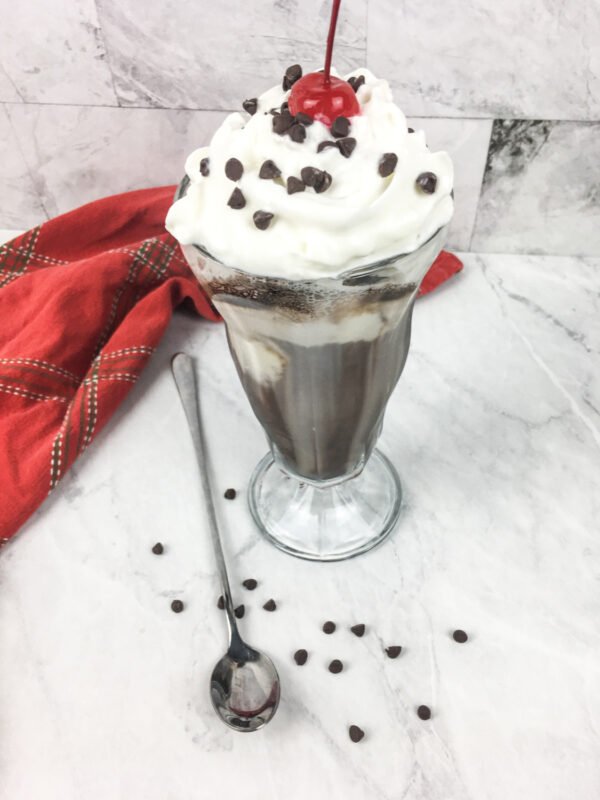 - To serve, top each ice cream soda with a generous amount of whipped cream, mini-chocolate chips, and a maraschino cherry. Enjoy!