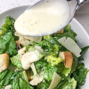 Classic Caesar Salad is a popular salad made with crisp romaine lettuce, croutons, Parmesan cheese, and a creamy Caesar dressing. The homemade dressing typically includes ingredients like mayonnaise, garlic, anchovies, Dijon mustard, lemon juice, and Worcestershire sauce. It’s a delicious and flavorful salad that is perfect as a side dish or as a main course with added protein like grilled chicken or shrimp.