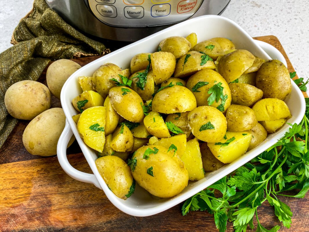 - Turn the unit off and drain the potatoes completely. Return the potatoes to unit and add melted butter and parsley. Season with additional salt and black pepper, if desired, and toss to combine.