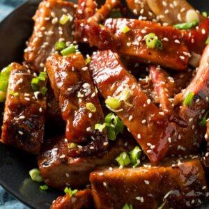 - Optionally, garnish the Chinese Barbecued Spareribs with chopped green onions for added freshness and presentation.