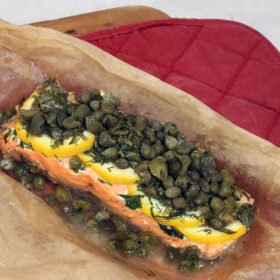 Baked Salmon en Papilotte with Fresh Herbs and Capers