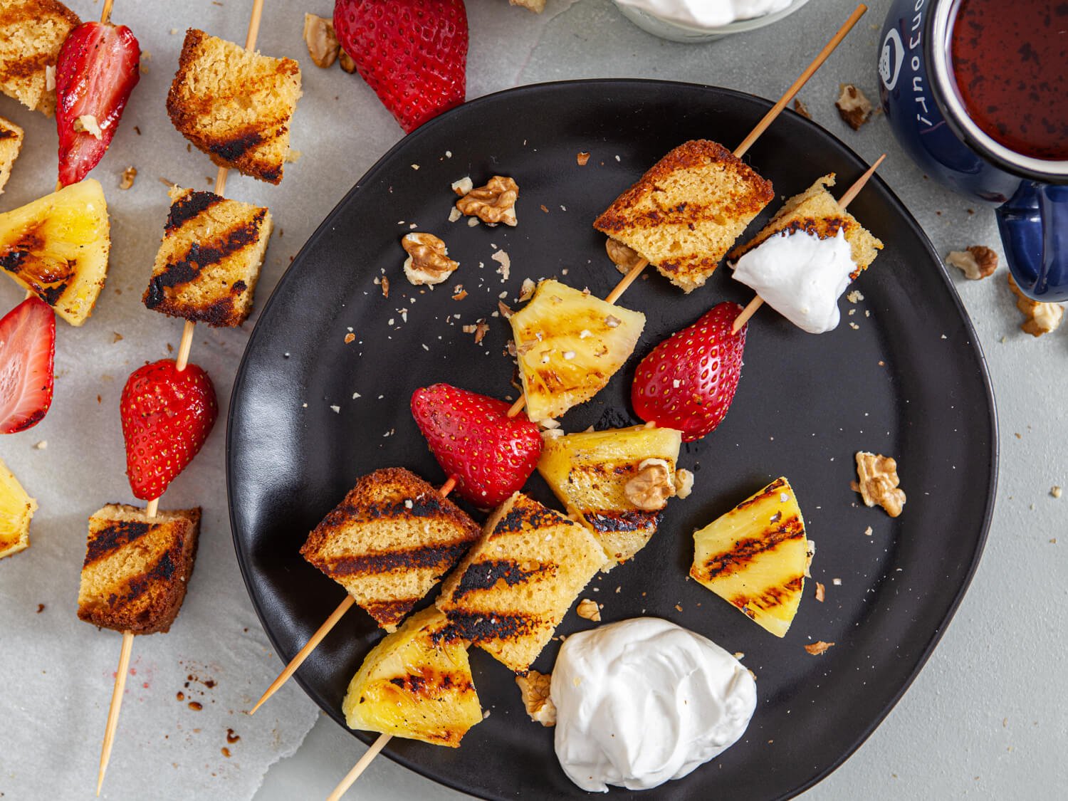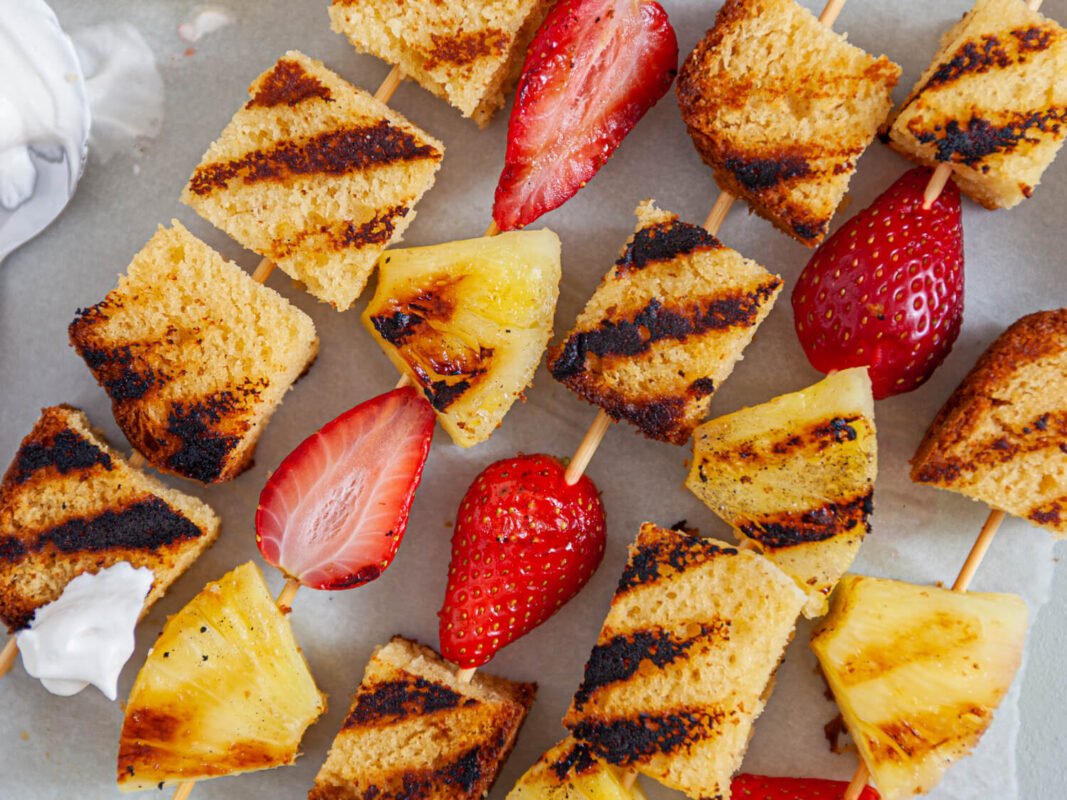 Grilled Pound Cake, Pineapple & Strawberry Skewers