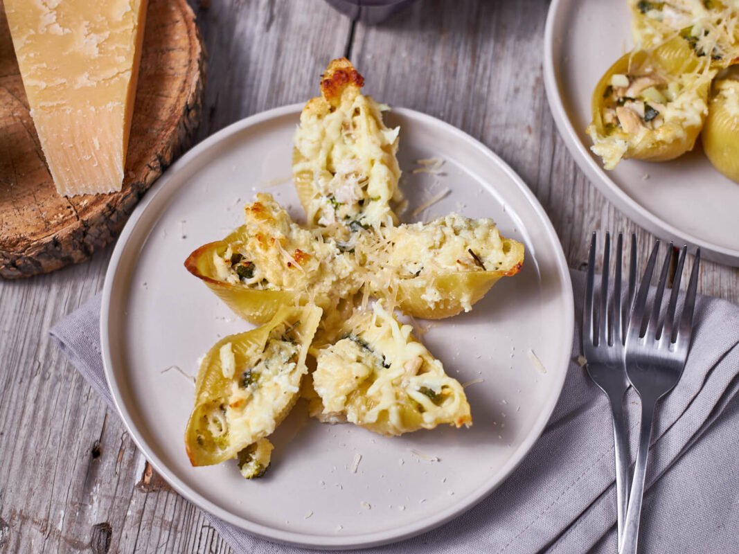 Broccoli & Chicken Alfredo Stuffed Shells