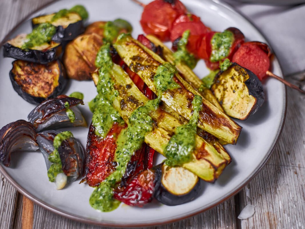 - Remove the vegetables from the gill as they are ready and arrange on a serving platter. Drizzle with the remaining marinade and serve immediately.
