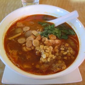 - To serve, place a serving of noodles in a bowl and pour the fish broth over the noodles. Add the garnishes on top.