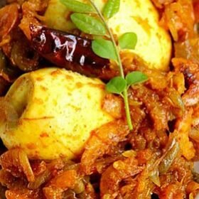 - Add the hard-boiled eggs to the curry and stir them in gently.