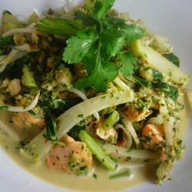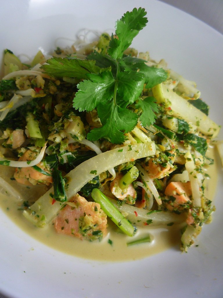 - Serve the Green Thai Fish Curry hot with rice or noodles.