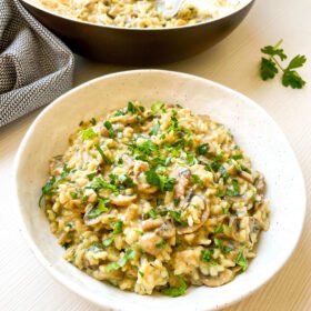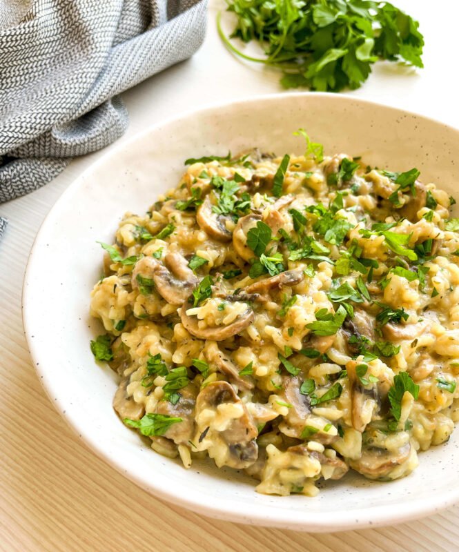 - Add onion, garlic, and mushrooms. Season to taste with salt and pepper.
