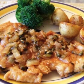 Chicken Piccata with Rosemary Roasted Yukon Gold Potatoes and Broccoli
