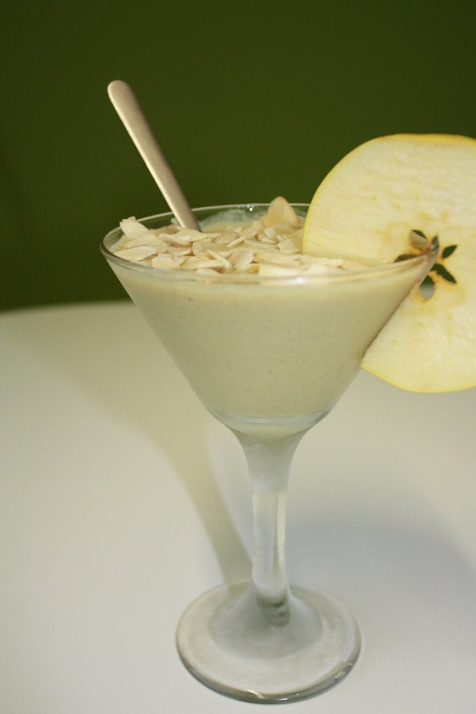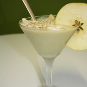 - Pour the Apple Almondilla Smoothie into a glass and garnish with a slice of apple and almond flakes , if you'd like.