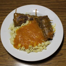 - Return the Rouladen to the skillet, cover, and simmer over low heat for about 1.5 – 2 hours, or until the beef is tender.