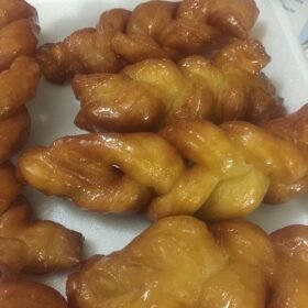 - In a deep frying pan or pot, heat vegetable oil to around 356°F (180°C). Carefully fry the braided dough strips in batches until golden brown and crispy. Remove from the oil and drain on paper towels.