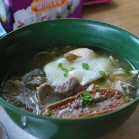 - Once ready, transfer the Mee Calong to serving plates and garnish with sliced green onions, fried shallots, and a squeeze of lime if desired.