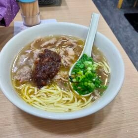 Sha Cha sauce beef noodles soup is a delicious Chinese dish. It features tender beef slices, noodles, and a flavorful broth made with Sha Cha sauce. Sha Cha sauce is a savory and slightly spicy condiment made from soybean oil, garlic, shallots, dried shrimp, and various spices. It adds a unique and mouthwatering flavor to the soup. The combination of the rich broth, succulent beef, and chewy noodles create a satisfying and comforting meal.