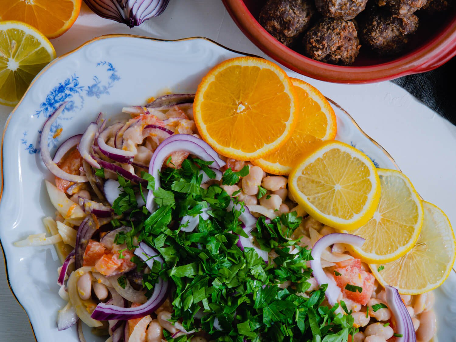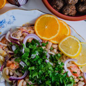 - Drizzle tahini orange sauce on beans and toss to combine.