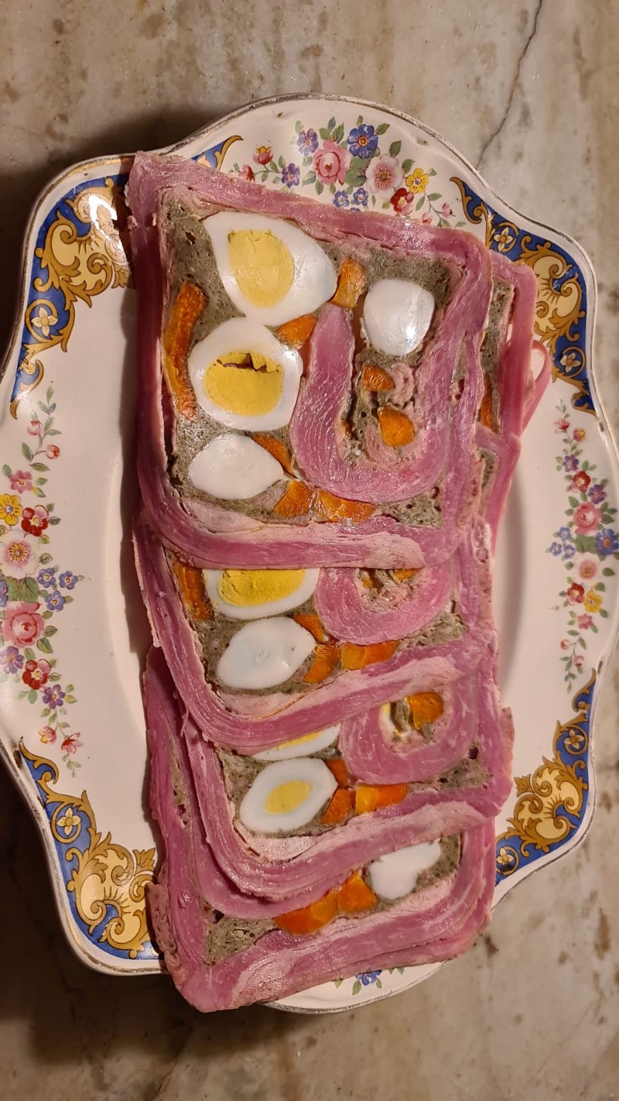 - Layer the spinach leaves, red bell pepper slices, julienned carrots, and sliced hard-boiled eggs over the flattened steak, leaving a border around the edges.
