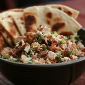 - Before serving, garnish the Kelaguen with fresh cilantro or green onions for an added pop of freshness and color.