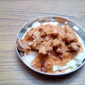 - Place a few Rotti on a plate and pour the hot Kori curry over them, allowing the Rotti to absorb the flavors of the curry.