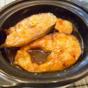 - Reduce the heat to low and pour the reserved marinade over the fish. Cover the skillet or clay pot with a lid and let it simmer for about 15-20 minutes, or until the fish is cooked through and the sauce has thickened.