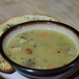 - Serve the split pea soup hot and garnish with some chopped fresh herbs, croutons, or a dollop of sour cream if desired.