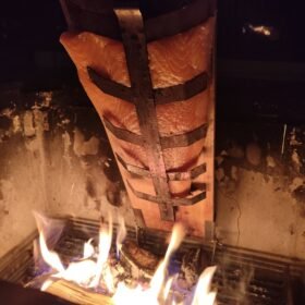 - Carefully place the salmon fillet on the grill, skin-side down. If using a grill, place it on the indirect heat side.