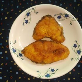 - Serve the Katla machh bhaja hot with steamed rice, roti, or any side dish of your choice.