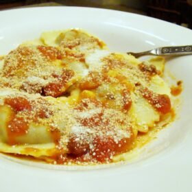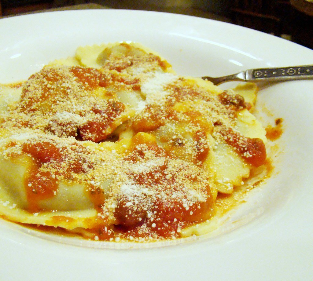 Porcini Mushroom Ravioli with Bella Marinara and Rice Parmesan