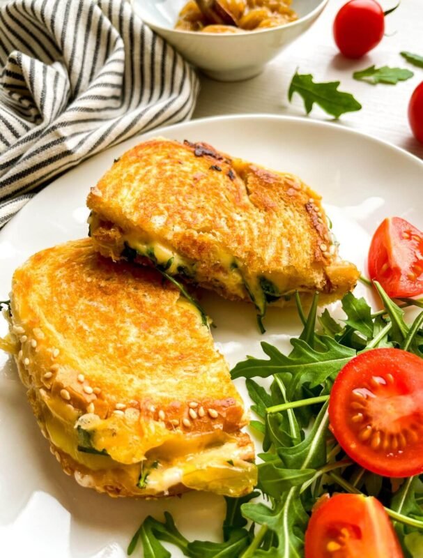 Caramelized Onion, Arugula, & Herbed Mayo Gourmet Grilled Cheese