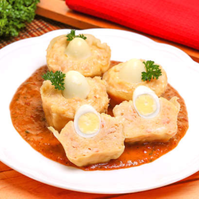 - Place a quail egg in the center of each shrimp mixture and shape into balls.
