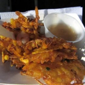 - Scoop a portion of the mixture and drop it into the hot oil. Flatten slightly to form a fritter.