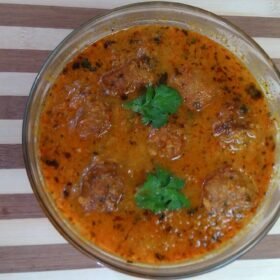 - Gently drop the fried koftas into the gravy and let them simmer for a few minutes.