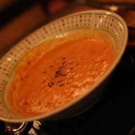 - Using an immersion blender or regular blender, puree the soup until smooth.