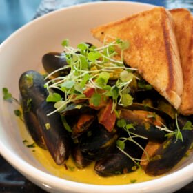- Serve the curry mussels hot, garnished with fresh cilantro. Enjoy with crusty bread or over rice.