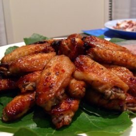 - Remove the wings from the grill and place on a serving platter. Garnish with chopped green onions and sesame seeds.