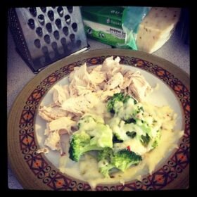 - Sprinkle the shredded pepper jack cheese evenly over the chicken and broccoli.