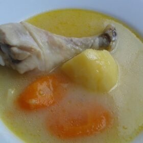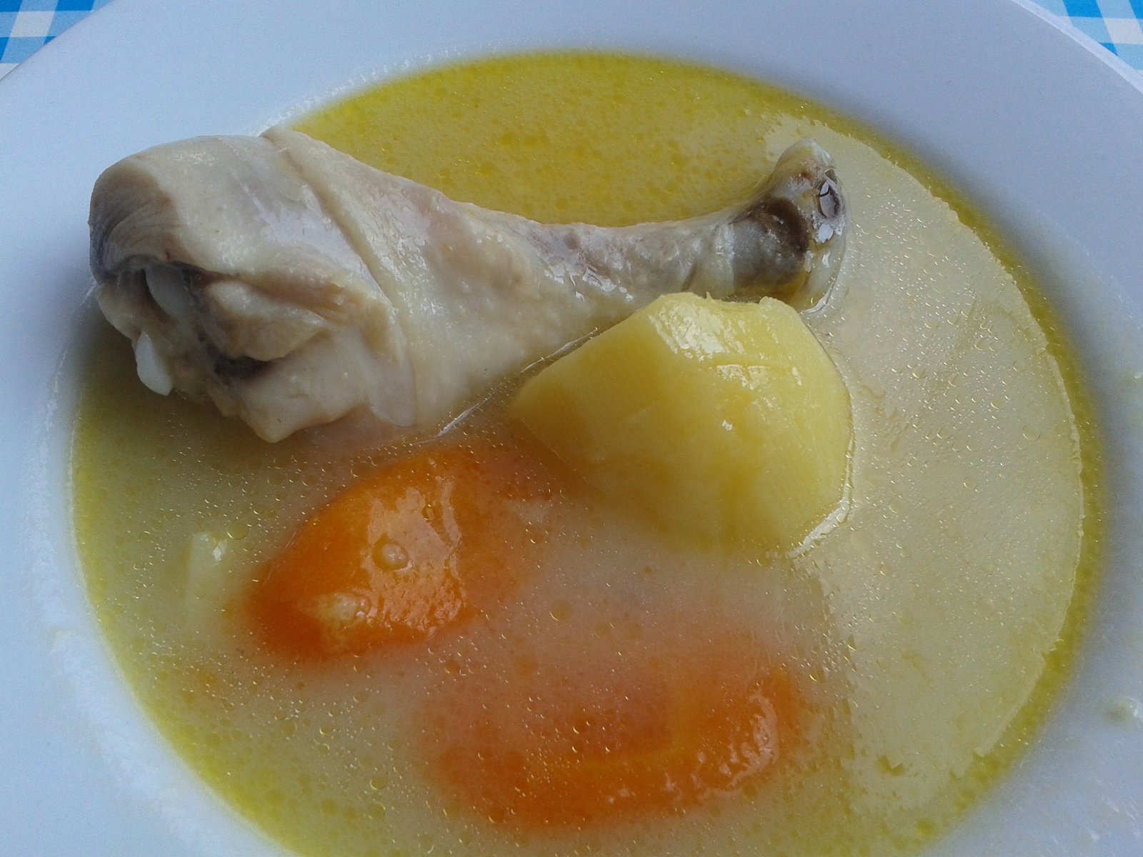 - In a large pot, add the chicken pieces, chopped onion, carrots, potatoes, tomato, and garlic.