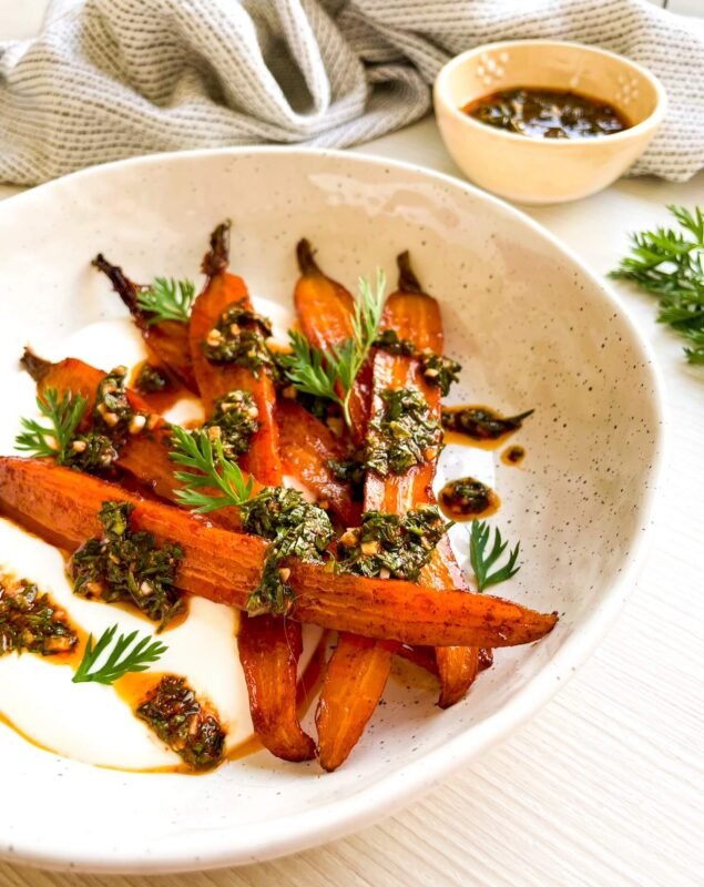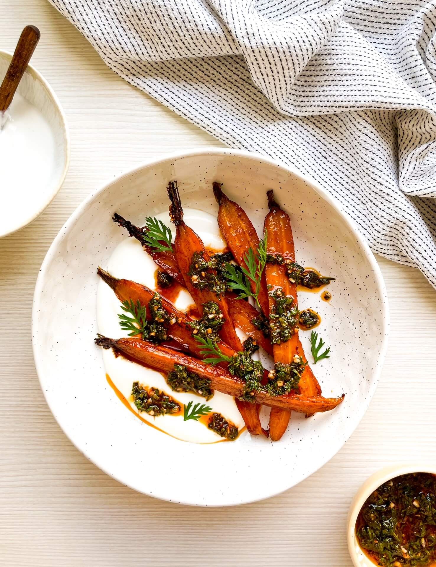Roasted Carrots over Labneh with Chimichurri Labneh