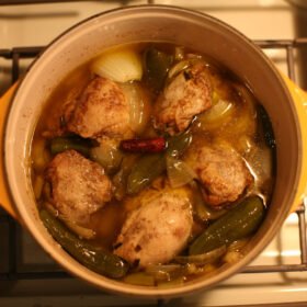 - Add the marinated chicken and cook for a few minutes until the chicken is browned on all sides.